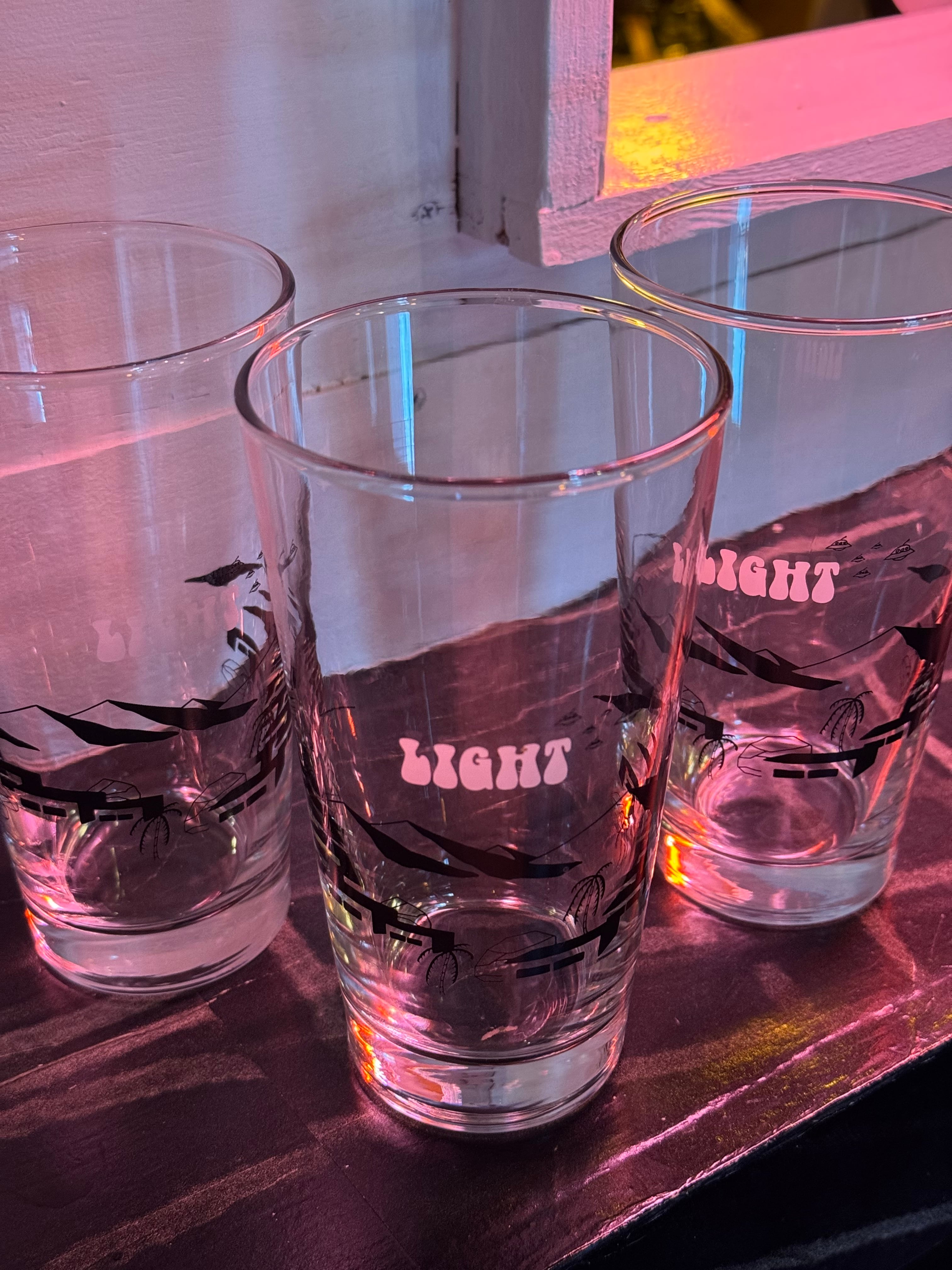 当店が5周年の時に開催したパーティ"BLACK LIGHT"のビジュアルを落とし込んで大きめのパイントグラスが完成しました。